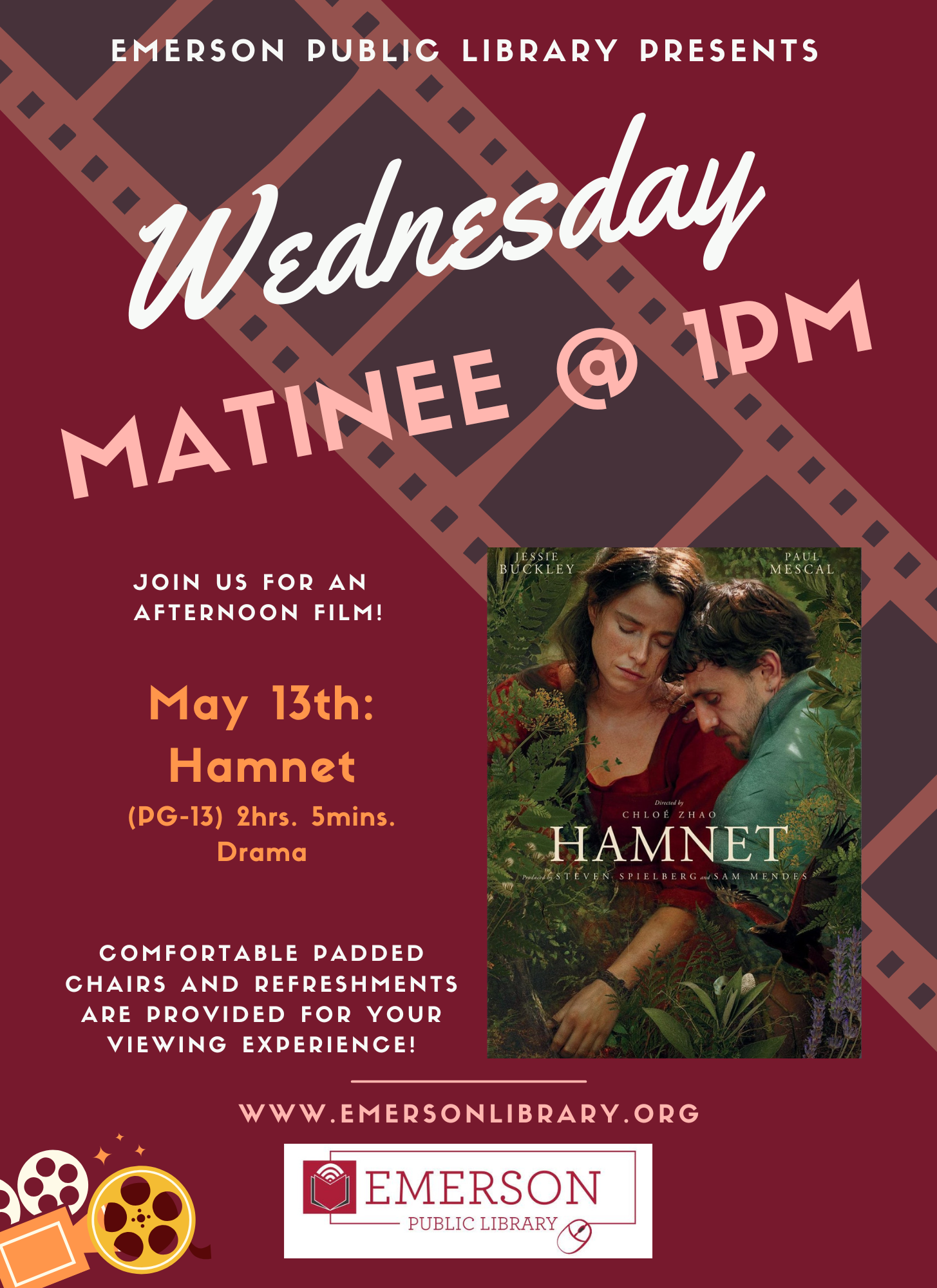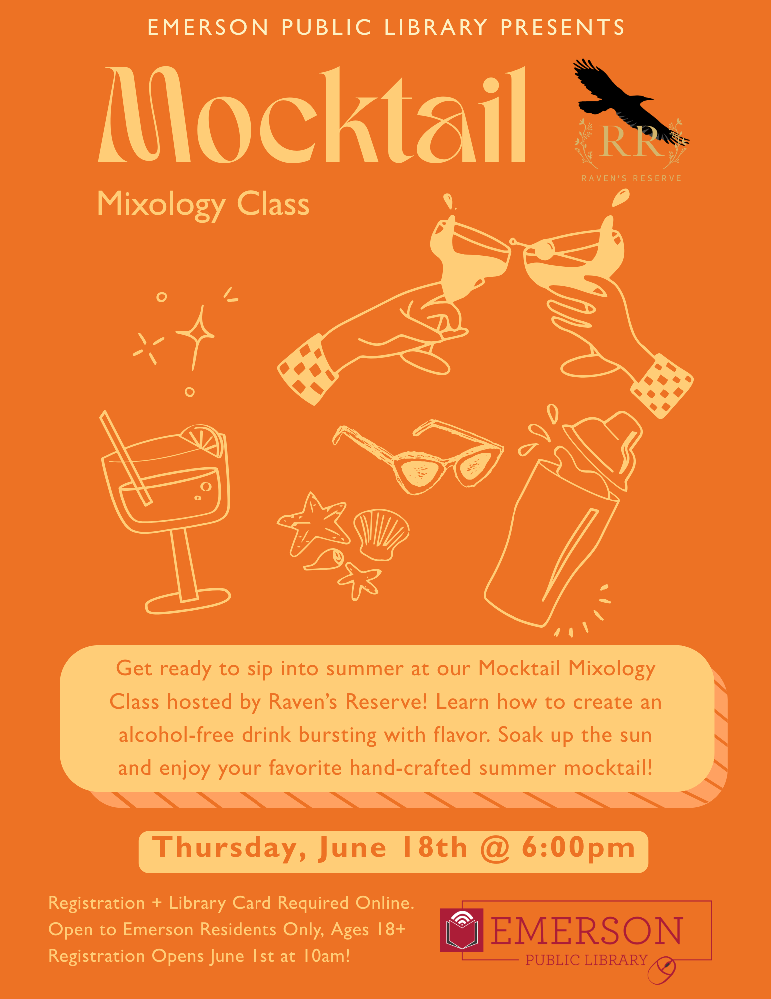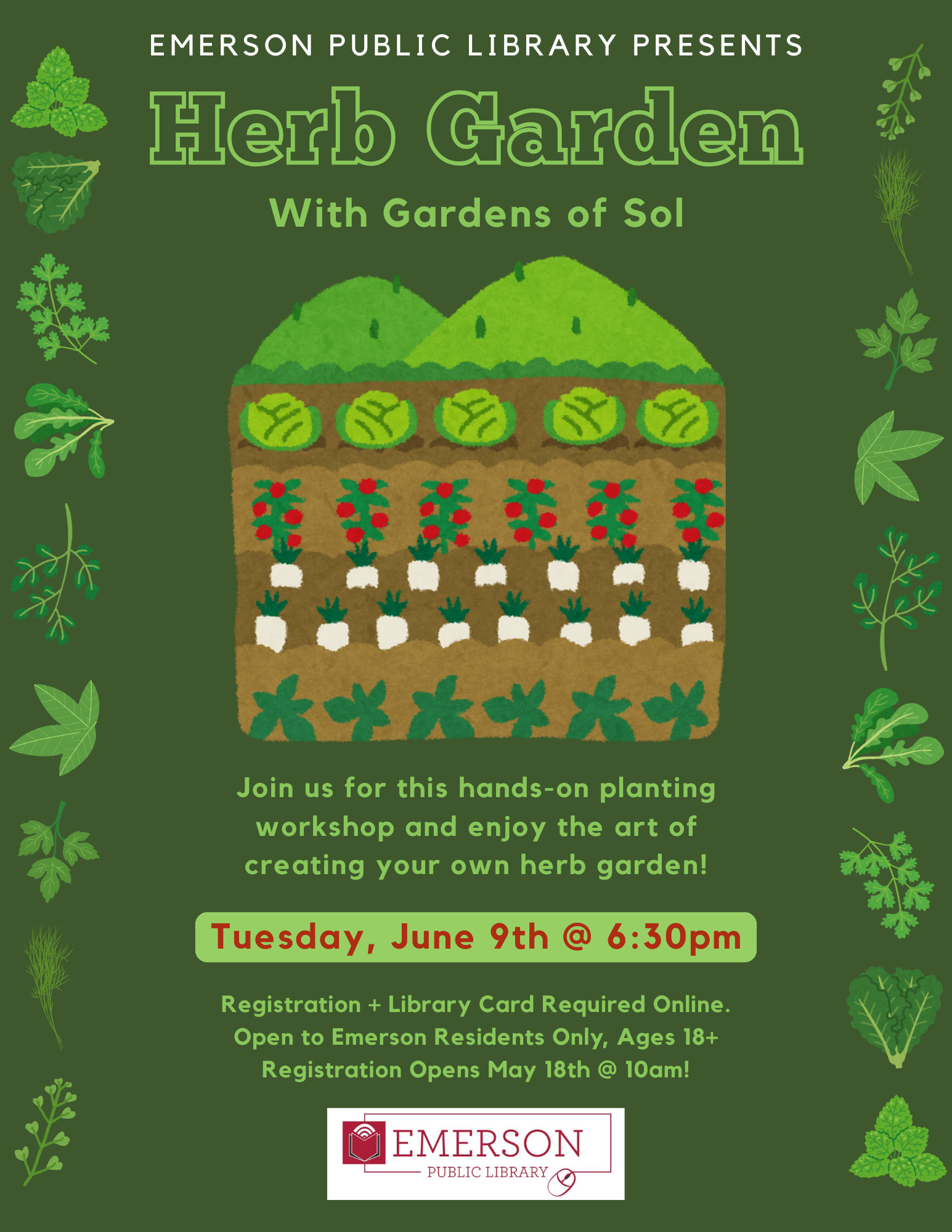 Registration Required Online. Open to the Residents of Emerson Only. Registration Opens May 1st at 10am!
