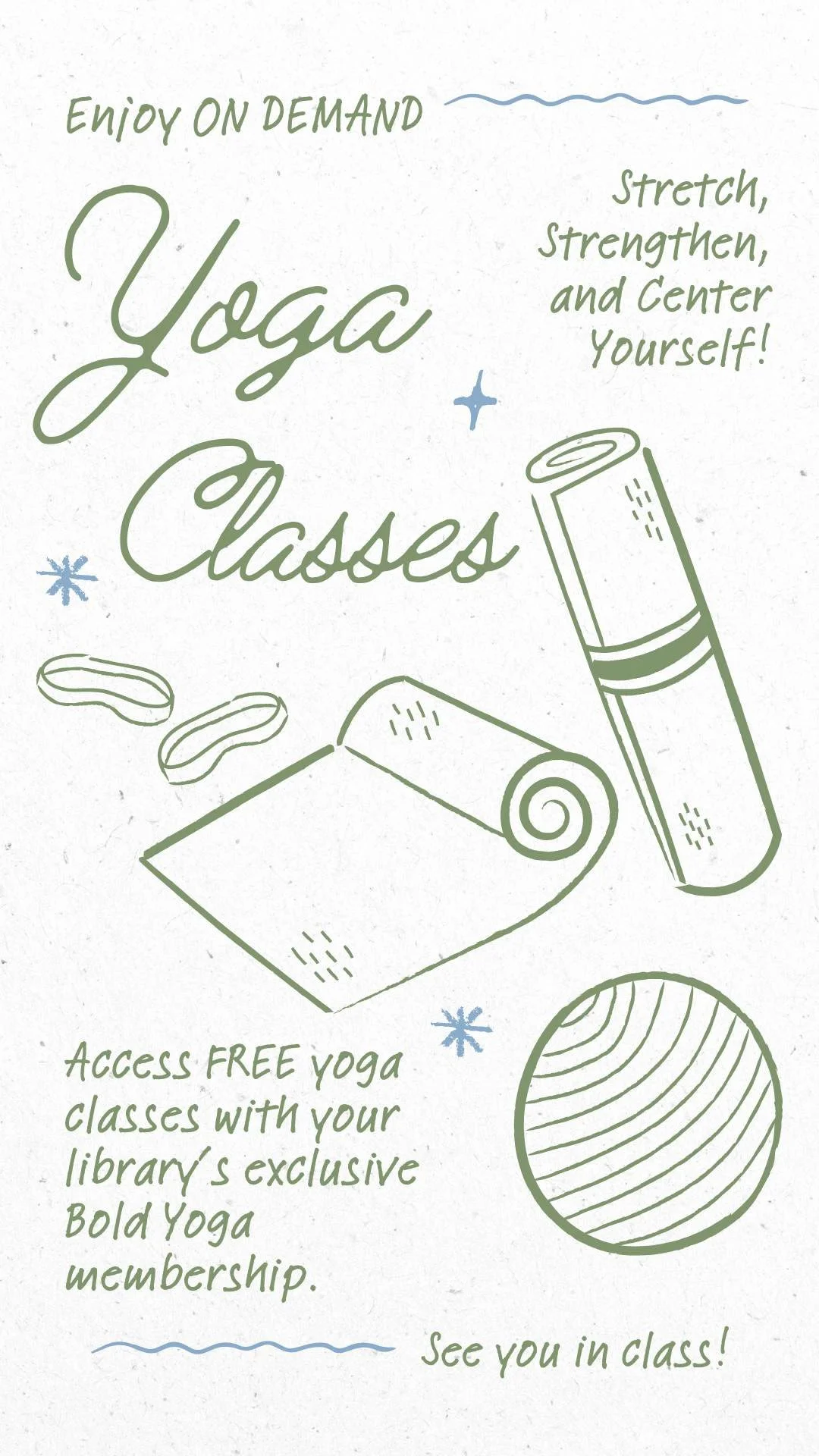 Bold Yoga is a virtual studio for Libraries. This new service supports patrons in creating healthy, mindful lifestyles by making classes available on their time, offering fitness classes for all different ability levels. Includes Bendy Bookworm Kids videos!