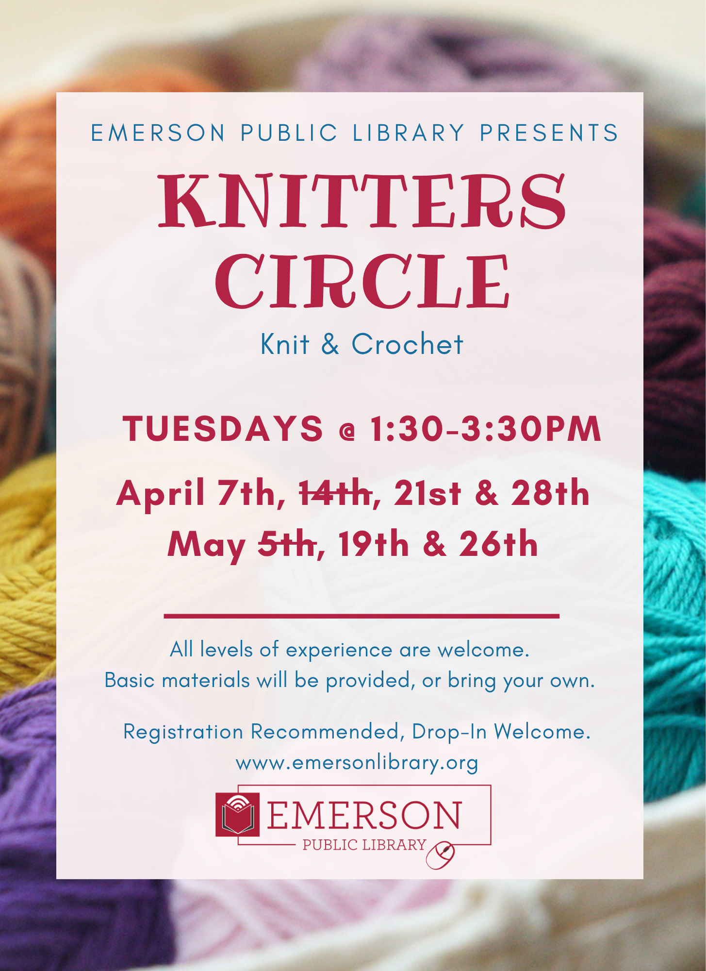 Join the Knitters Circle for an afternoon of knitting and crochet. All levels of experience are welcome.