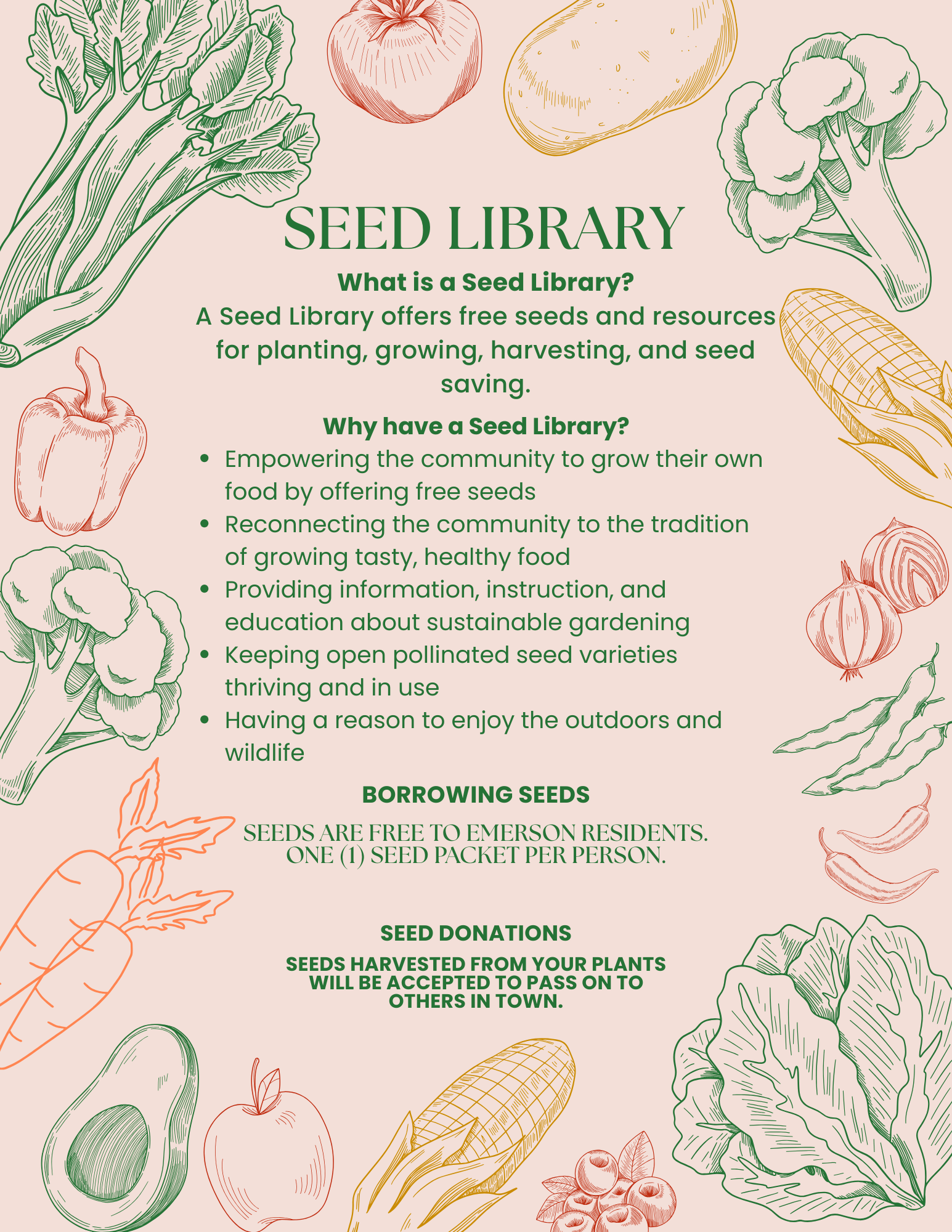 Seeds are free to Emerson Residents and are located near the Circulation Desk.